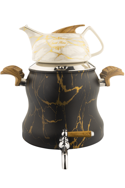 کتری و قوری کیانا استیل رنگی ماربل کروپ ست با پایه وارمر چوبی کد 701M