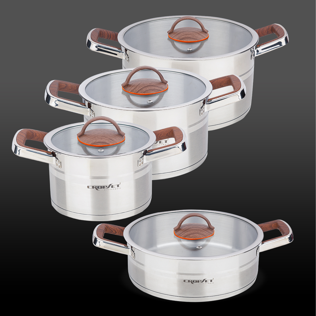 سرویس قابلمه 8 پارچه استیل نقره ای براق کروپ ست کد 5200، ترکیبی از دوام، طراحی مدرن و عملکرد حرفه ای در آشپزخانه است.