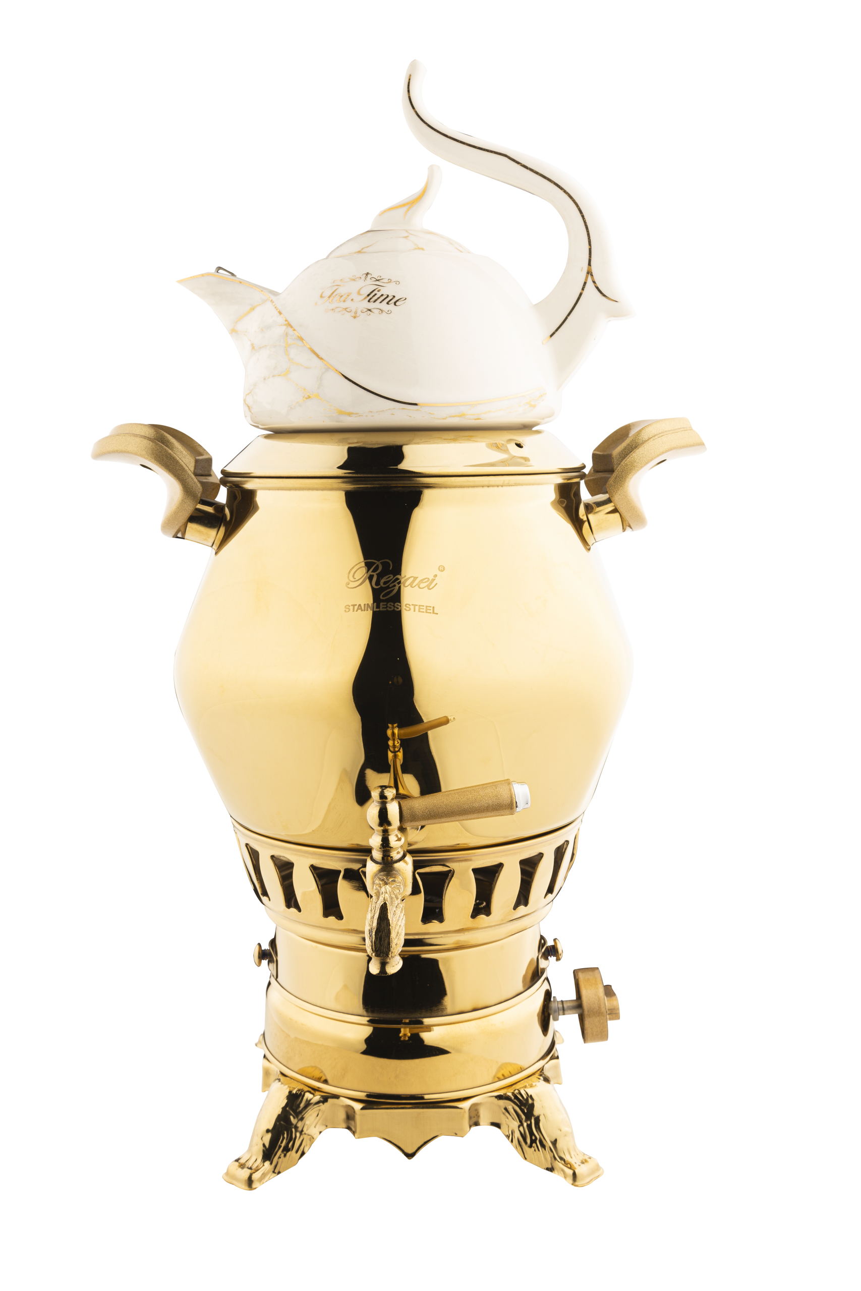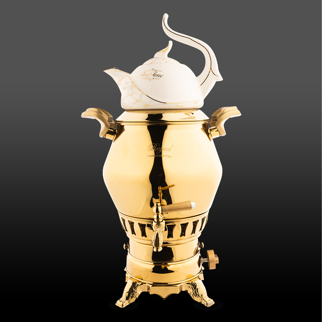 سماور 3 کاره استیل طلایی براق کروپ ست مدل الماس کد 1080T با ظرفیت 5.5 لیتر، یک انتخاب خاص و حرفه ای است و از استیل 304 ضد زنگ و نسوز تولید شده که علاوه بر ظاهر درخشان و زیبا، دوام و مقاومت بالایی در برابر حرارت و ضربه دارد و کاملاً برای خانواده های پرجمعیت و پذیرایی در مهمانی ها مناسب است.