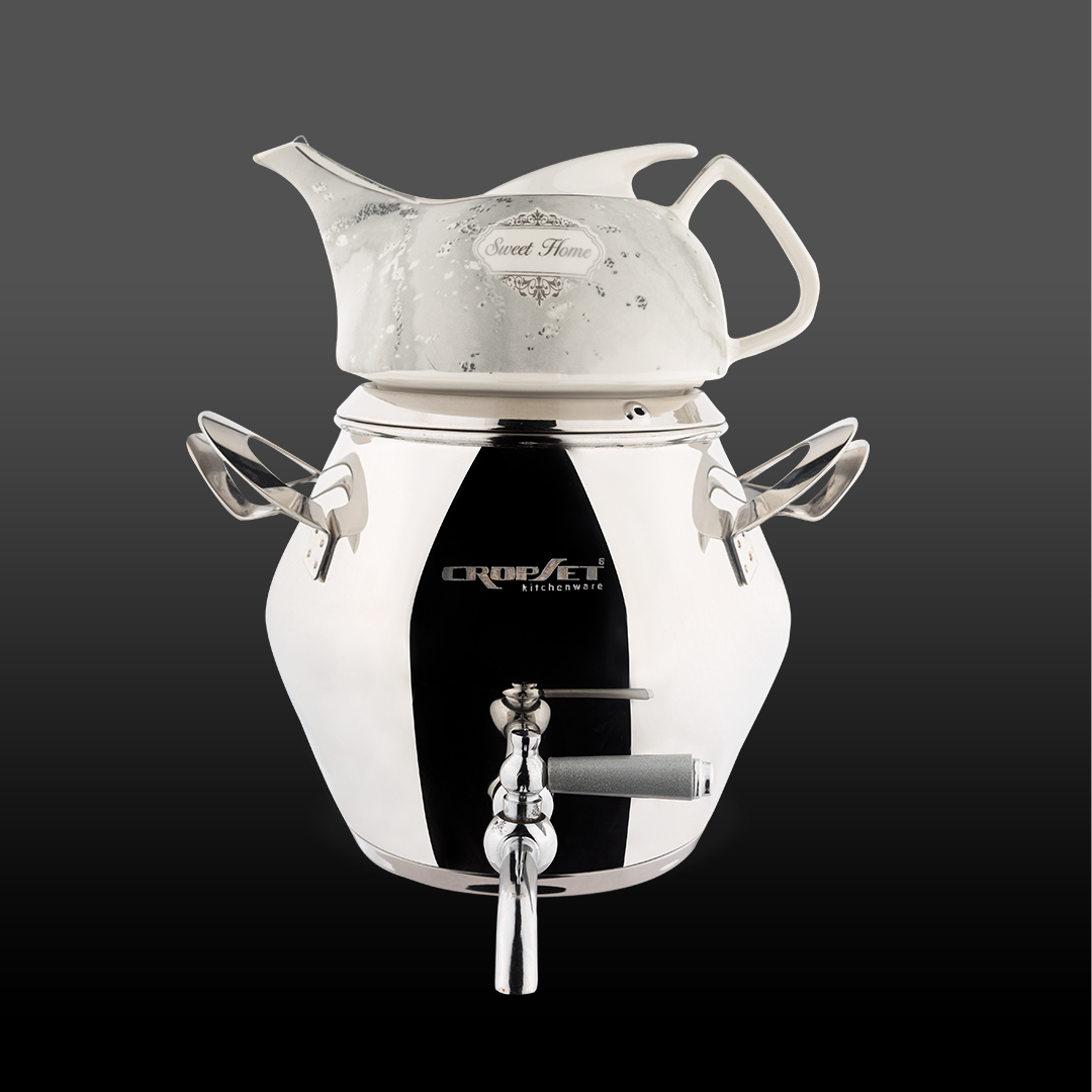 کتری و قوری استیل نقره ای براق کروپ ست مدل الماس کد 605 با ظرفیت 3.5 لیتر، با طراحی خاص برای خانوادههای کوچک و مهمانیها کاملاً مناسب است.