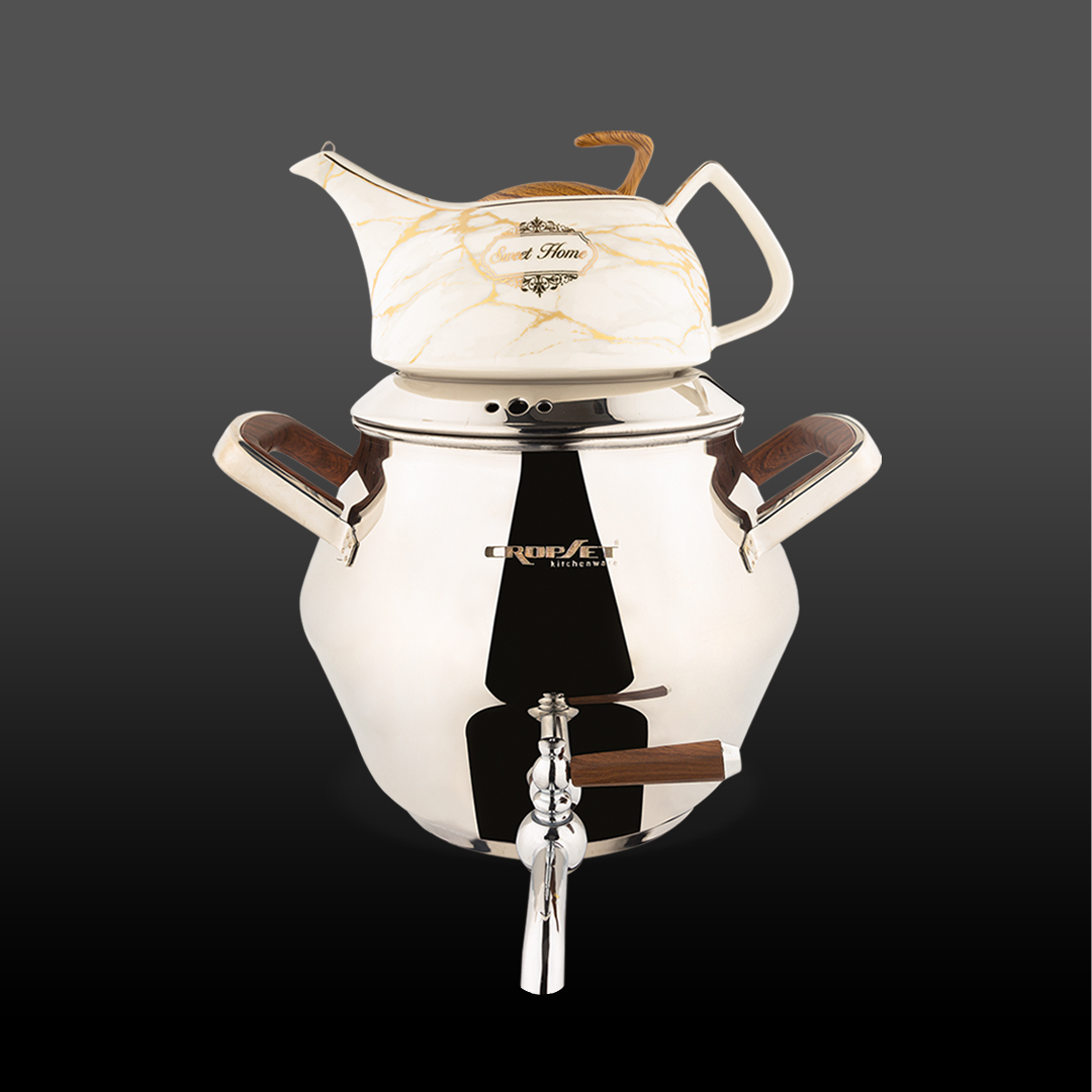 کتری و قوری استیل نقره ای براق کروپ ست مدل الماس کد 6052 با ظرفیت 3.5 لیتر، با طراحی خاص برای خانوادههای کوچک و مهمانیها جمع و جور کاملاً مناسب است.