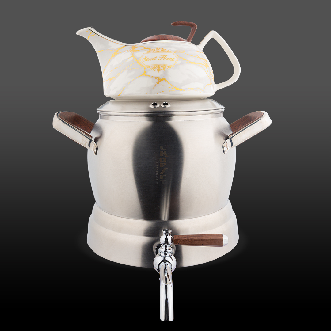 کتری و قوری استیل نقره ای مات کروپ ست مدل آرمیتا کد 9901 با ظرفیت 5.5 لیتر، مخصوص خانواده های پرجمعیتی طراحی شده که چای همیشه جزئی از لحظه هایشان است و این ست رو به گزینه ای ایده آل برای مهمانی ها و دورهمی های گرم خانوادگی تبدیل کرده است.☕