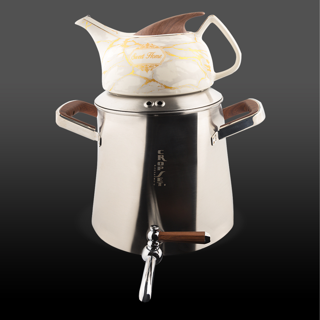 کتری و قوری استیل نقره ای مات کروپ ست مدل آرسس کد 1703 با ظرفیت 5 لیتر، فقط یک کتری و قوری نیست؛ یک اثر انحصاری است که فقط از دل کروپ ست به بیرون می آید 🤍