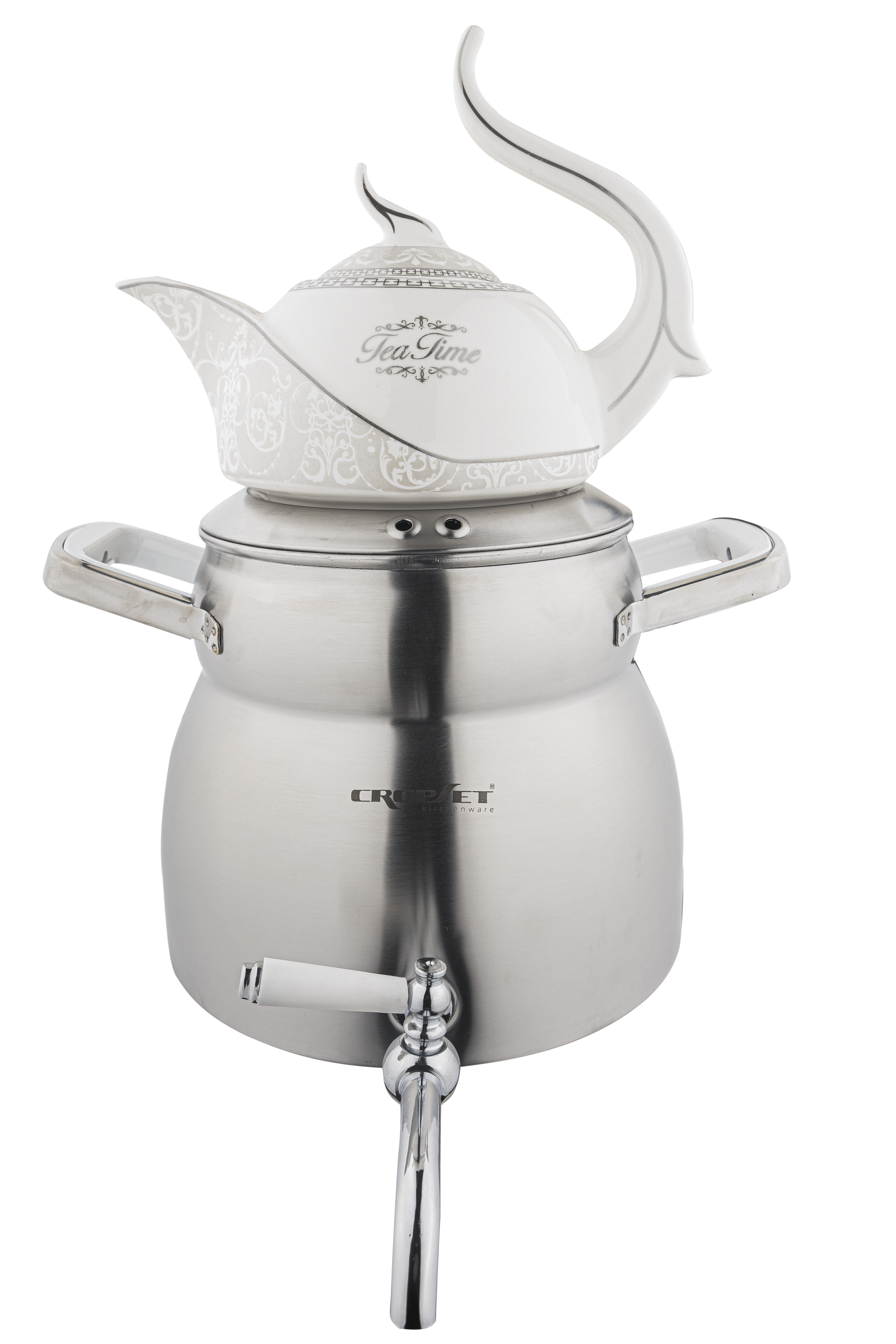 کتری و قوری استیل نقره ای مات کروپ ست مدل آوینا کد 1201W با ظرفیت 5.5 لیتر برای خانواده های پرمصرف و مهمانی های پیاپی، یک انتخاب حرفه ای است.