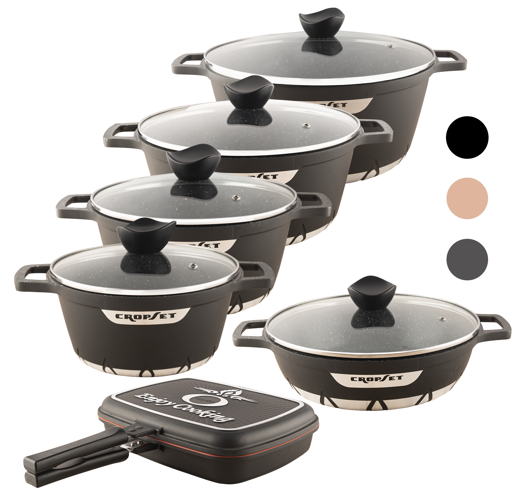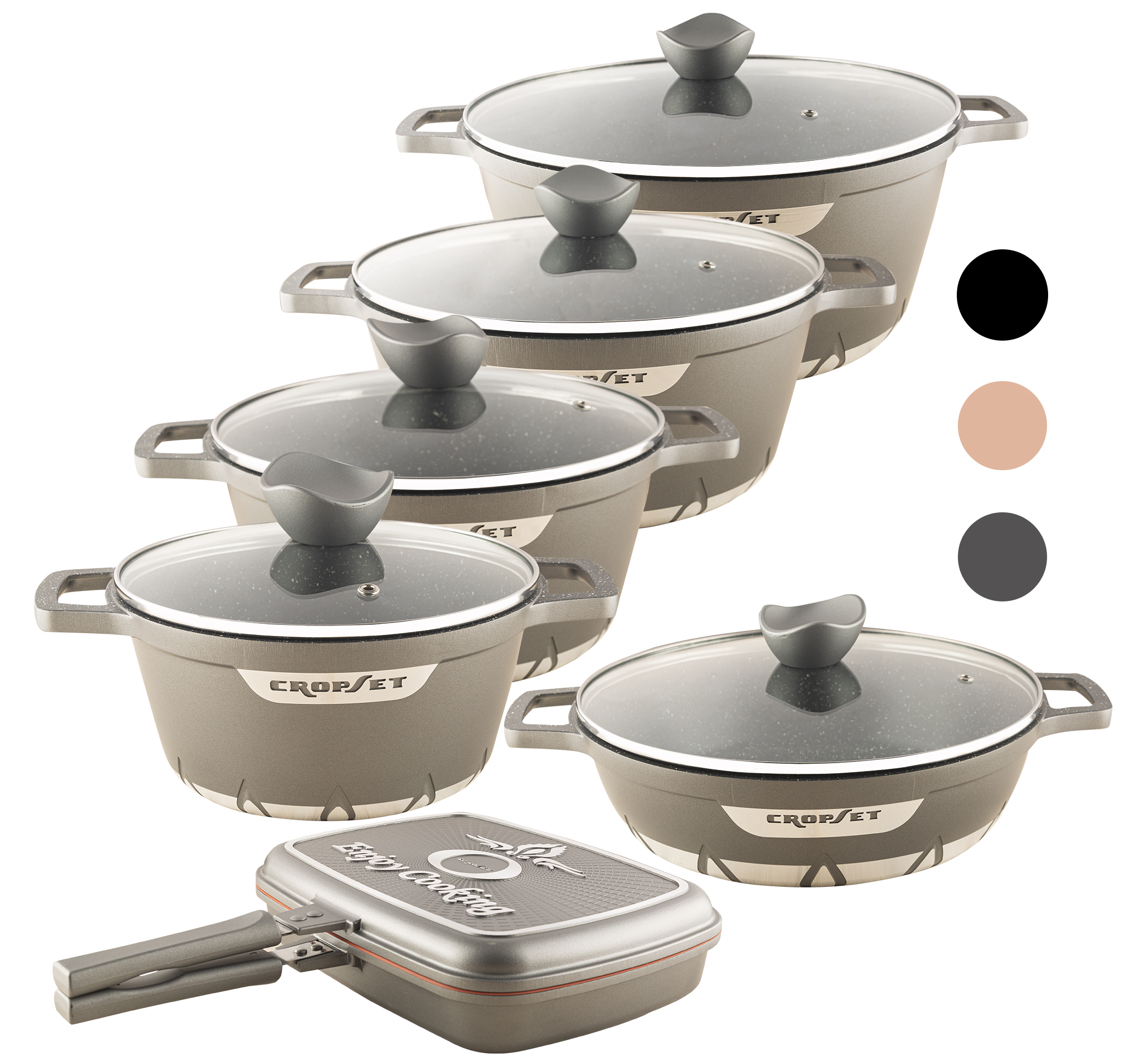 سرویس قابلمه 12 پارچه گرانیت مدل فلورانس از برند کروپ ست، انتخابی کامل و حرفه ای برای هر آشپزخانه ای است؛