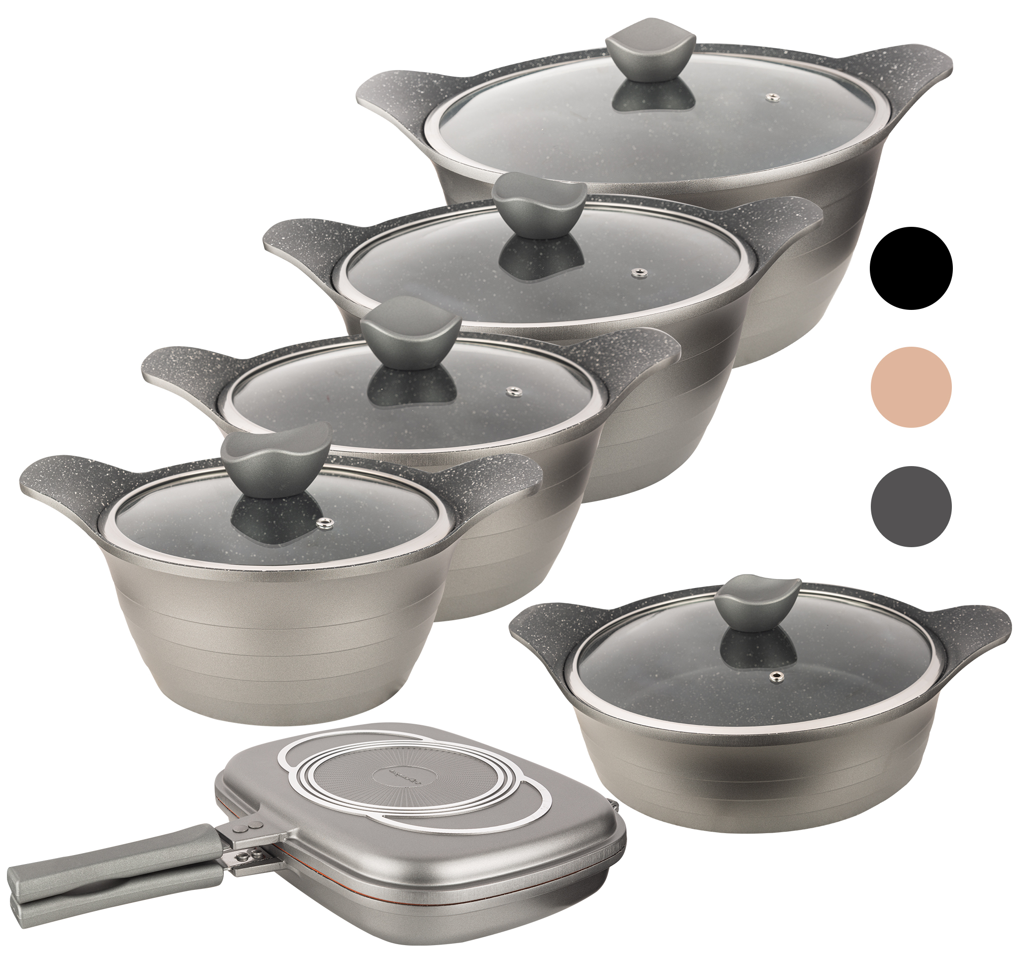 این مجموعه با پوشش گرانیتی مقاوم و باکیفیت طراحی شده تا در برابر خط و خش دوام بالایی داشته باشد و از چسبیدن غذا جلوگیری کند.