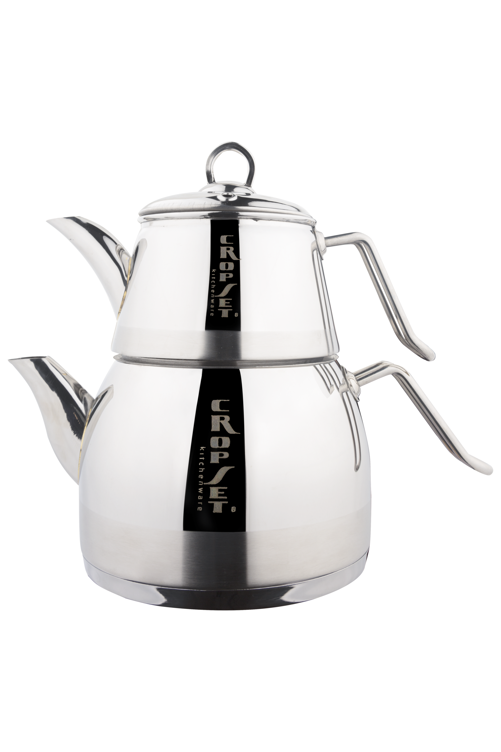 کتری و قوری استیل نقره ای براق کروپ ست مدل اریک لوله دار کد 2405 با ظرفیت 2.5 لیتر، یک انتخاب کلاسیک و مینیمال برای خانواده های کم جمعیت و مهمانی های کوچک است.