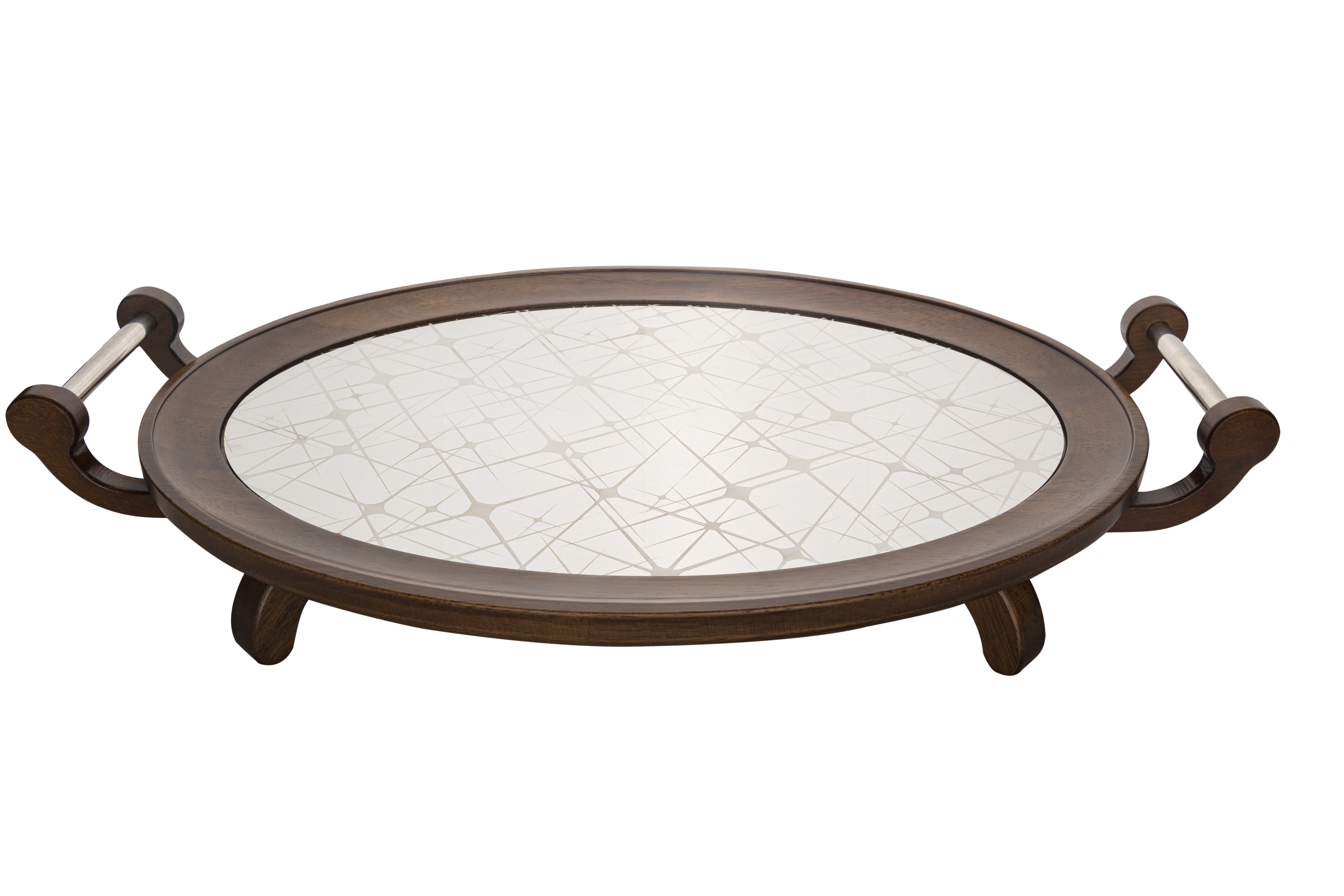 پایه های چوبی ظریف، سینی را اندکی از سطح میز بالاتر نگه میدارند که باعث میشود جلوه ای رسمی تر، مجلل تر و حرفهای تر در پذیرایی ایجاد شود.