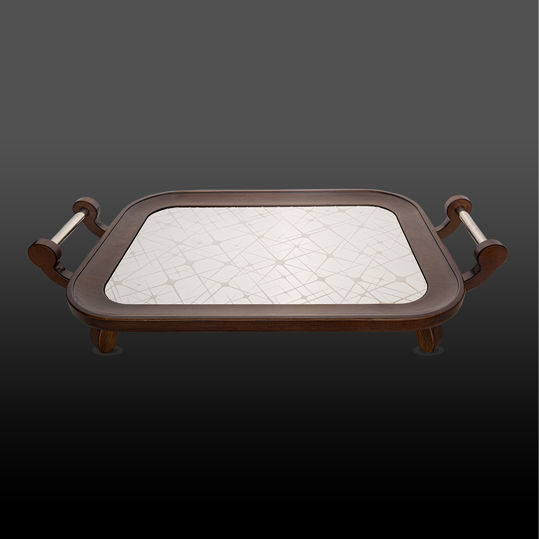پایه های چوبی ظریف، سینی را اندکی از سطح میز بالاتر نگه میدارند که باعث میشود جلوه ای رسمی تر، مجلل تر و حرفهای تر در پذیرایی ایجاد شود.