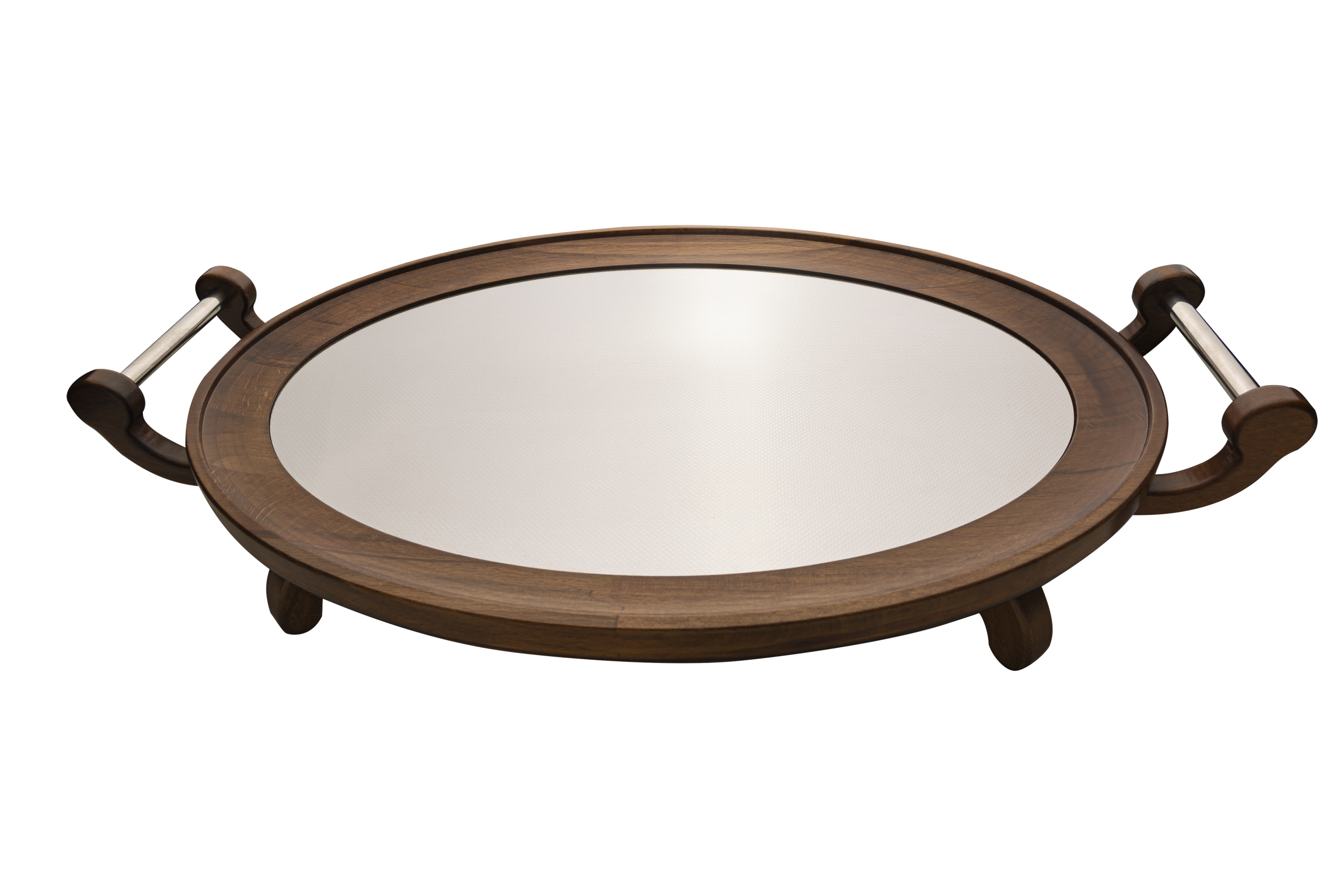 پایه های چوبی ظریف، سینی را اندکی از سطح میز بالاتر نگه میدارند که باعث میشود جلوه ای رسمی تر، مجلل تر و حرفه ای تر در پذیرایی ایجاد شود.