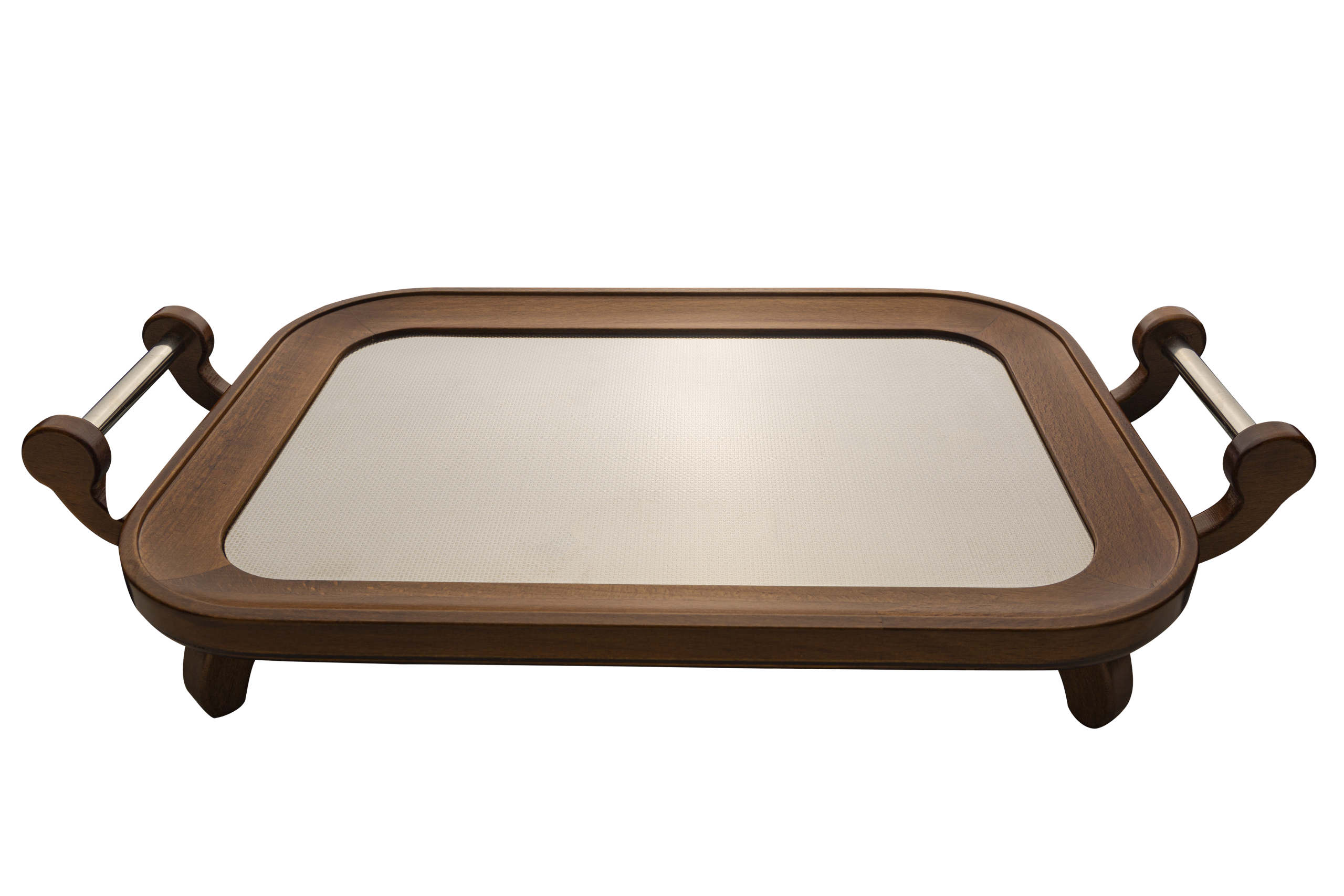 پایه های چوبی ظریف، سینی را اندکی از سطح میز بالاتر نگه میدارند که باعث میشود جلوه ای رسمی تر، مجلل تر و حرفه ای تر در پذیرایی ایجاد شود.
