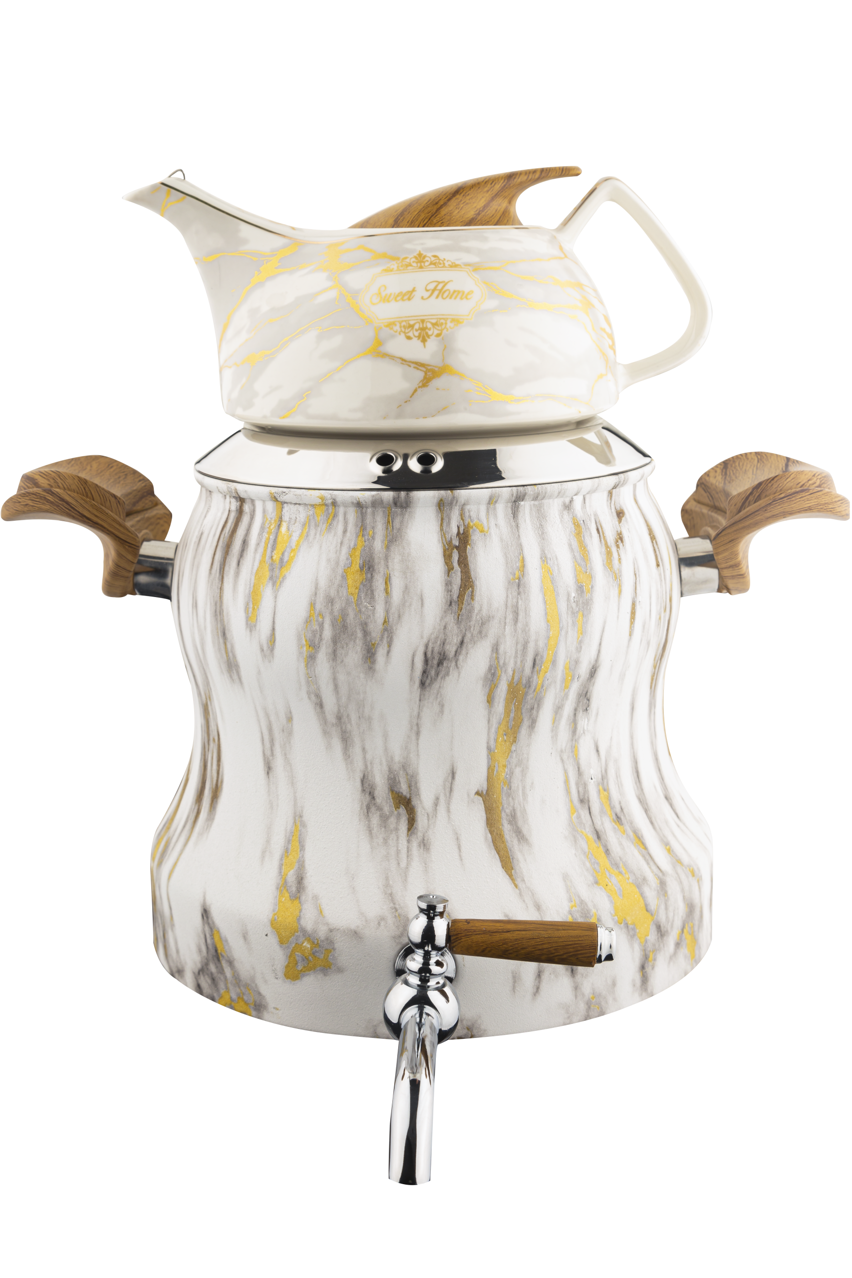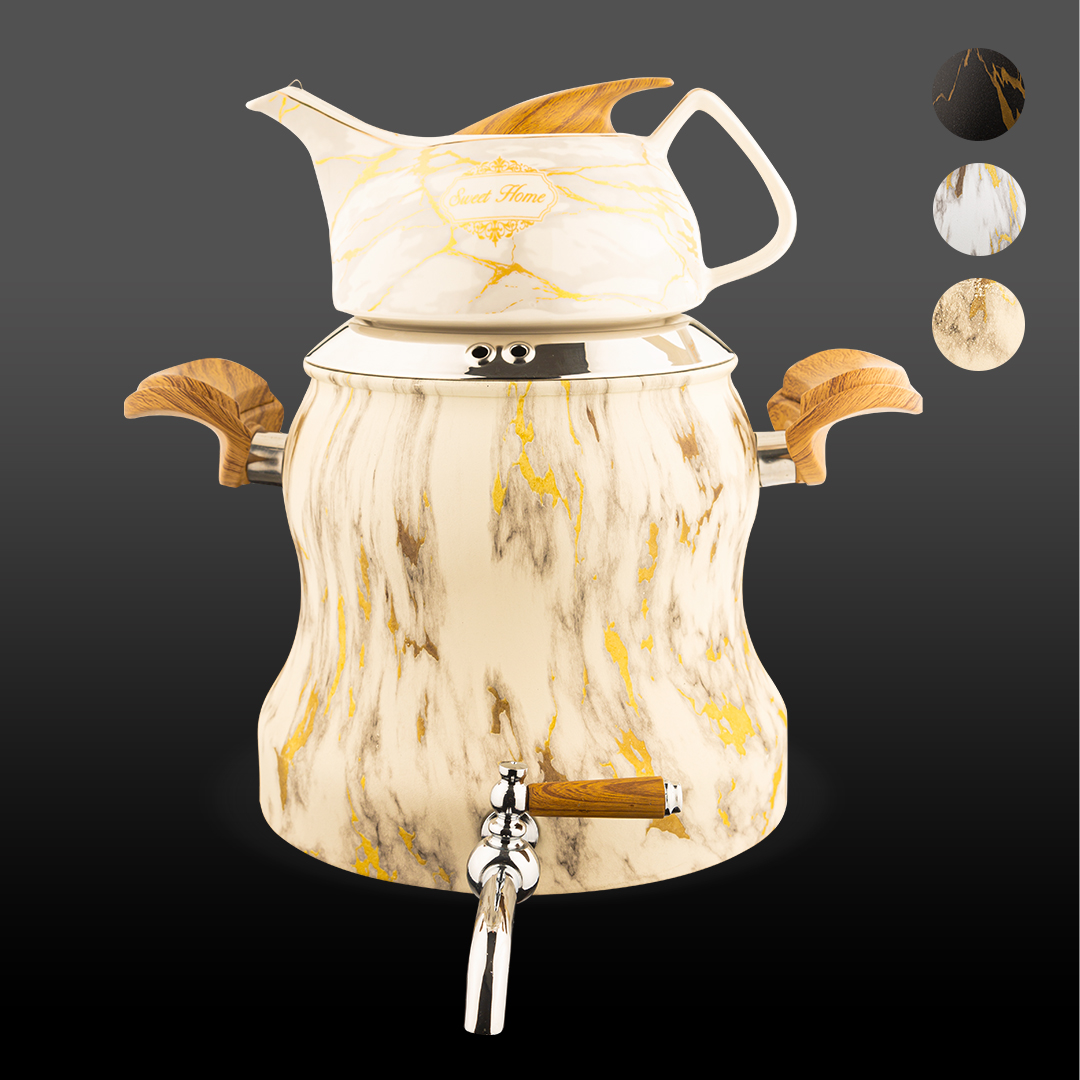 کتری و قوری استیل رنگی ماربل کروپ ست مدل رونیکا کد 8041 با ظرفیت 5 لیتر یک انتخاب شیک برای جمع های خانوادگی و مهمانی ها ایدهآل است.
