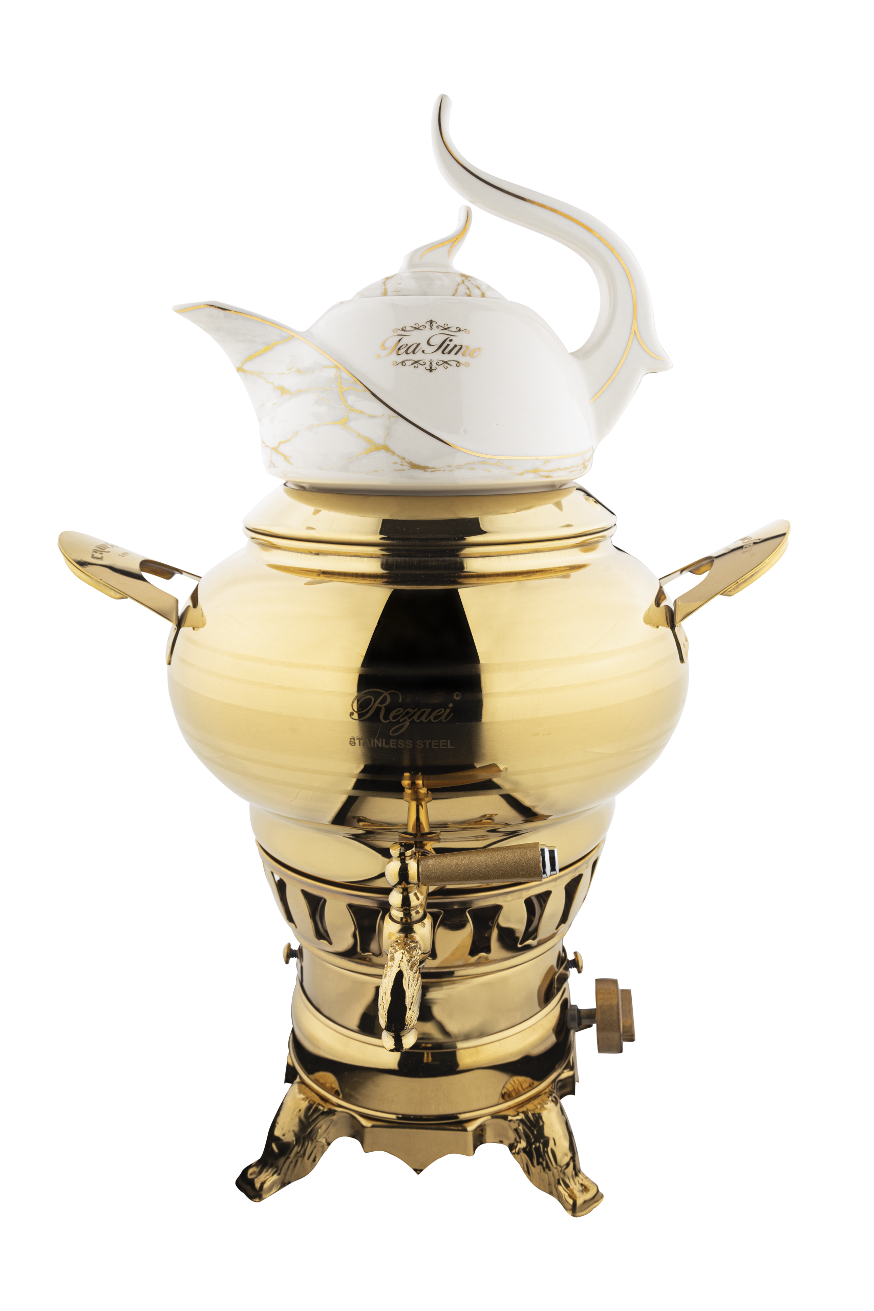 سماور 3 کاره استیل طلایی براق کروپ ست مدل ساحر کد 1020T با ظرفیت 5.5 لیتر، یک انتخاب خاص و حرفه ای است و از استیل 304 ضد زنگ و نسوز تولید شده که علاوه بر ظاهر درخشان و زیبا، دوام و مقاومت بالایی در برابر حرارت و ضربه دارد و کاملاً برای خانواده های پرجمعیت و پذیرایی در مهمانی ها مناسب است.